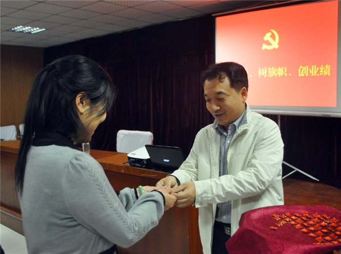 會后,集團黨委書記高波為一支部全體黨員配發(fā)黨徽,要求黨員亮明身份,時刻銘記黨員義務(wù),接受群眾監(jiān)督。