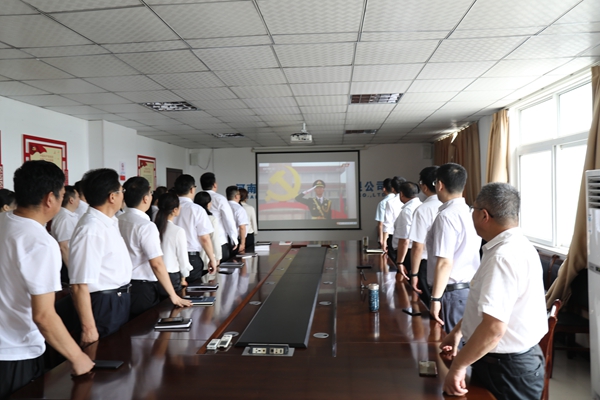 會議室內(nèi)和現(xiàn)場一樣氣氛熱烈,全體起立齊聲高唱國歌,認(rèn)真聆聽了習(xí)近平總書記的重要講話。當(dāng)聽到習(xí)總書記振奮人心的話語、看到精彩的畫面時,響起陣陣掌聲和喝彩聲。