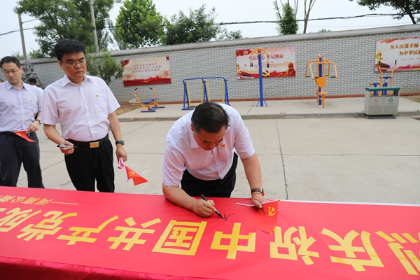 在《沒有共產(chǎn)黨就沒有新中國》的激昂旋律中,“向黨說句心里話”簽名寄語環(huán)節(jié)開始,大家一起在“熱烈慶祝中國共產(chǎn)黨成立100周年”條幅上寫上對黨最美好、最誠摯的祝福!