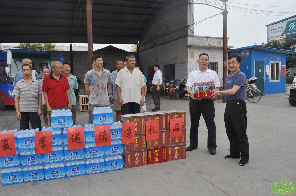 進(jìn)入盛夏以來,驕陽似火,暑熱逼人,為表達(dá)對一線職工的關(guān)愛,8月2—3日,公路港集團(tuán)黨委書記王洛生,監(jiān)事會主席徐玉卡,紀(jì)委書記、工會主席王東民代表集團(tuán)領(lǐng)導(dǎo)班子看望慰問了正在辛勤勞動的一線職工們,并把涼茶、礦泉水等防暑降溫用品送到一線職工的手中,集團(tuán)領(lǐng)導(dǎo)現(xiàn)場關(guān)切詢問了一線職工的生產(chǎn)生活情況,要求所屬單位領(lǐng)導(dǎo)要在高溫酷熱期間合理安排工作,采取有效措施,切實(shí)做好防暑降溫、勞動保護(hù)等工作,保護(hù)好廣大職工的身心健康。 集團(tuán)領(lǐng)導(dǎo)的關(guān)心愛護(hù)讓廣大職工實(shí)實(shí)在在從心里感到了“清涼”,進(jìn)一步調(diào)動了廣大職工的工作熱情,促進(jìn)了企業(yè)經(jīng)營活動的順利開展。現(xiàn)場職工紛紛表示,將以更加努力地工作和優(yōu)異的成績?yōu)榧瘓F(tuán)的跨越式發(fā)展做出積極貢獻(xiàn)。