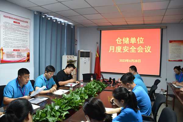 6月28日,倉儲單位召開了月度安全會,并邀請集團經(jīng)營管理部負(fù)責(zé)同志參會指導(dǎo)。會議對近期安全生產(chǎn)形勢進行了分析研判,傳達學(xué)習(xí)了安全相關(guān)文件,對近期安全工作進行了梳理總結(jié),并對下一步工作進行了具體安排:一是深刻汲取近期全國發(fā)生的生產(chǎn)安全事故教訓(xùn),舉一反三,警鐘長鳴;二是對安全生產(chǎn)月系列活動進行總結(jié);三是對防汛工作進行重點安排;四是持續(xù)開展重大隱患排查整治工作,消除隱患;五是盯緊庫區(qū)吸煙、電氣線路、用電設(shè)備、施工改造等重點方面,嚴(yán)防風(fēng)險;六是對車輛安全、戶外工作安全等進行強調(diào);七是觀看安全教育視頻,提升安全意識和技能。