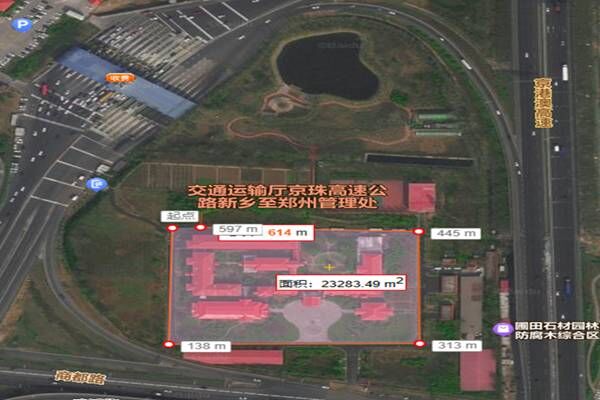 新鄭管理處俯視衛(wèi)星圖 土地遙測(cè)面積152畝,已用辦公區(qū)域40畝,可利用面積112畝