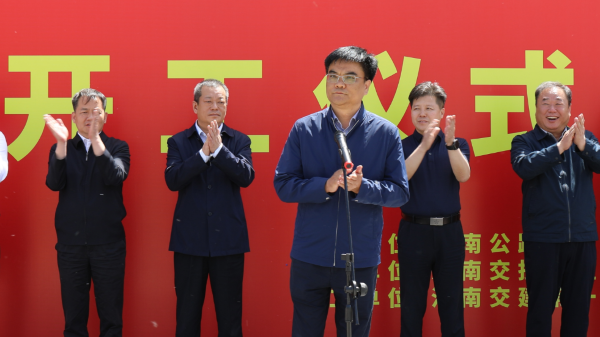 公路港集團(tuán)黨委書記、董事長袁棟棟宣布河南交投公路港新鄉(xiāng)物流快遞分撥中心項(xiàng)目開工。