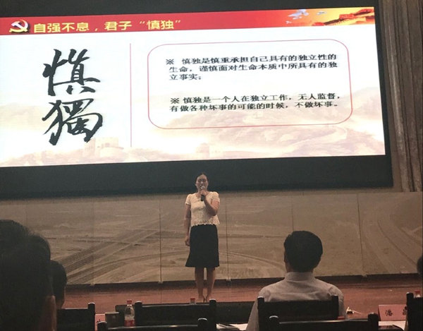 近日,公路港集團(tuán)倉儲(chǔ)單位職工田亞麗參加交通投資集團(tuán) “踐行兩學(xué)一做”微型黨課比賽,榮獲優(yōu)秀獎(jiǎng)。田亞麗同志以《自強(qiáng)不息,君子慎獨(dú)》為主題,用真實(shí)的事例和生動(dòng)的語言,講述了作為一個(gè)共產(chǎn)黨員,無論身處何時(shí)、何地、何種身份,都要堅(jiān)持做到自強(qiáng)不息,始終保持“慎獨(dú)”的精神,創(chuàng)造良好的政治生態(tài)。 |