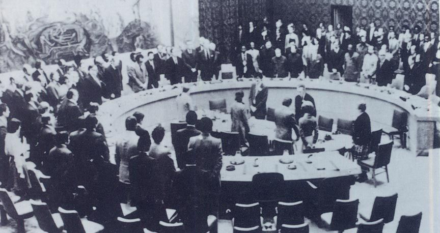 1976年1月12日,聯(lián)合國安全理事會成員國代表和觀察員開會時,為周恩來的逝世默哀。