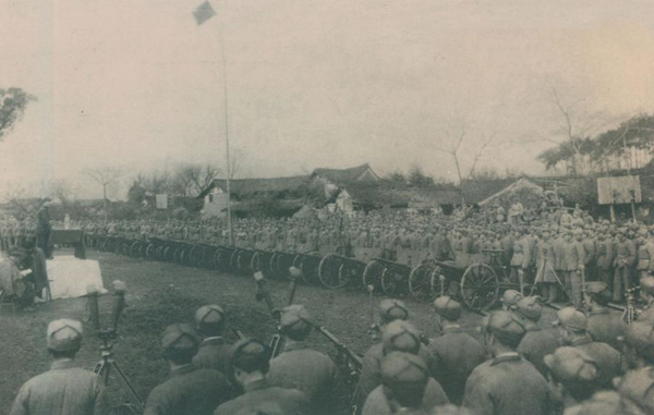 1949年1月15日,中共中央軍委決定各野戰(zhàn)軍改為按序列數(shù)排列。圖為人民解放軍某部宣讀整編命令。