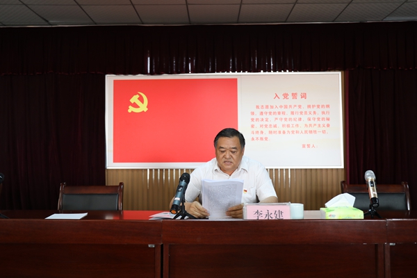 隨后黨委書記、董事長李永建帶領(lǐng)全體黨員,面向鮮紅黨旗,緊握右拳,一起重溫入黨誓詞。