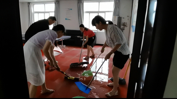 清理重建過(guò)程中,公路港集團(tuán)干部職工齊心協(xié)力,通力合作,搬東西、掃積水、清垃圾、擦桌子,同志們一次次揮動(dòng)著掃帚、拖把等工具,把一波波積水、一堆堆垃圾清理掉。有的同志全身被積水澆透,有的身上沾滿臟物,大家不怕苦、不怕累,在長(zhǎng)達(dá)四個(gè)多小時(shí)的共同努力下,辦公樓各區(qū)域積水被清理干凈,干凈整潔辦公樓又呈現(xiàn)到大家面前。