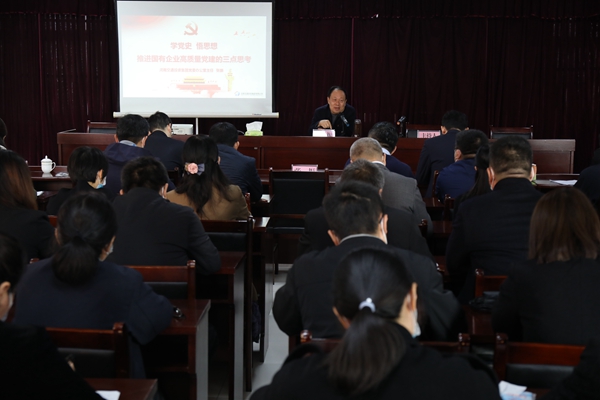10月27日,公路港集團舉辦黨委理論學習中心組黨史學習教育讀書班專題輔導(dǎo)報告會,交通投資集團黨委辦公室主任張振為黨員干部作專題輔導(dǎo)。公路港班子成員,所屬單位班子成員及黨員代表、黨務(wù)工作者、總部全體人員60余人參加。 張主任與參會人員一起學習了習近平總書記在中華人民共和國恢復(fù)聯(lián)合國合法席位50周年紀念會議上的講話、全國國有企業(yè)黨的建設(shè)工作會議精神,深化了干部職工對黨史、國史的認識和了解,激發(fā)了大家的強烈共鳴。 隨后,張主任以《學黨史悟思想推進國有企業(yè)高質(zhì)量黨建的三點思考》為題,圍繞“推進高質(zhì)量黨建要有對根魂工程的深刻認識和國之大者的站位,首先要解決好怎么看的問題;推進高質(zhì)量黨建要有春風化雨和潤物無聲的藝術(shù),關(guān)鍵要解決好怎么辦的問題;推進高質(zhì)量黨建要有和生產(chǎn)經(jīng)營深度融合的格局,重點要解決好怎么干的問題”三個方面,系統(tǒng)歸納了習近平總書記關(guān)于黨的歷史、黨的建設(shè)的重要論述,深刻闡述了開展黨史學習教育、加強黨的建設(shè)的重大意義,并緊密結(jié)合工作實際,圍繞做好國有企業(yè)黨建工作進行了深入講解,分享了寶貴經(jīng)驗。 與會人員集中觀看了河南廣播電視臺公共頻道《一拍即合》欄目播出的《黨建是搞好國企的重要法寶——河南交通投資集團高質(zhì)量黨建引領(lǐng)高質(zhì)量發(fā)展》視頻。大家一致認為,張主任輔導(dǎo)報告堅持以習近平中國特色社會主義思想為指導(dǎo),政治立場鮮明,解讀系統(tǒng)深入,方法具體明確,內(nèi)容豐富生動,對今后建設(shè)高質(zhì)量黨建工作,特別是標準化規(guī)范化支部建設(shè)具有很強的指導(dǎo)意義。 會議要求,一要提高站位抓學習。要以這次專題輔導(dǎo)報告會為契機,在學懂弄通做實上下功夫,進一步增強“四個意識”、堅定“四個自信”、做到“兩個維護”。二要多措并舉抓落實。緊密結(jié)合實際,采取多種形式,把輔導(dǎo)報告精神傳達到每位黨員,讓黨員學在前、作表率,推進公路港基層支部標準化、規(guī)范化建設(shè)。三要學用結(jié)合抓貫徹。對標對表交通投資集團黨委一系列新要求、新部署,切實把“學黨史 悟思想 辦實事 開新局”貫穿到各項工作中,圓滿完成年度各項目標任務(wù),讓學習的效果看得見、摸得著。 |